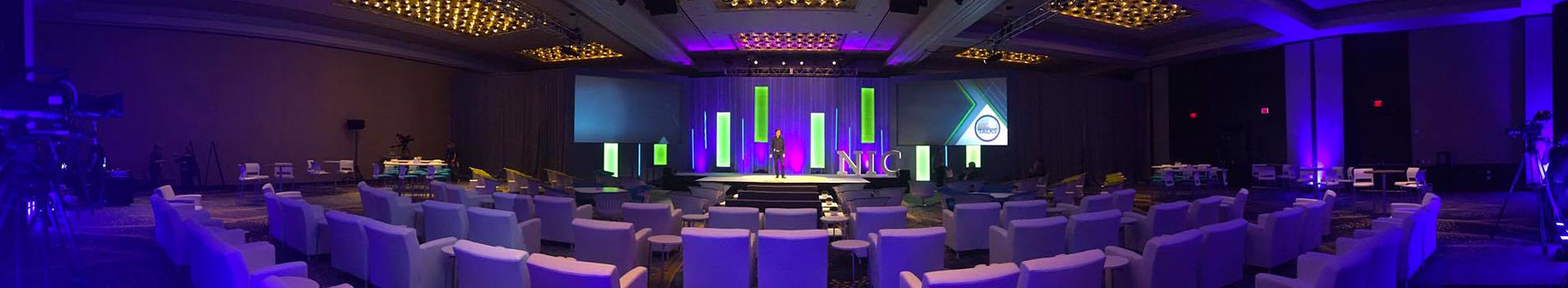High impact LED displays provide a cutting edge, dynamic, bright content rich format for you to deliver your conference message.